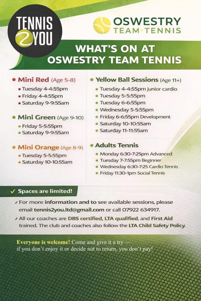 At Oswestry Team Tennis, we’ve got sessions for everyone: